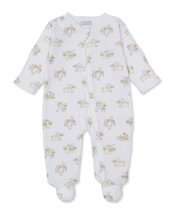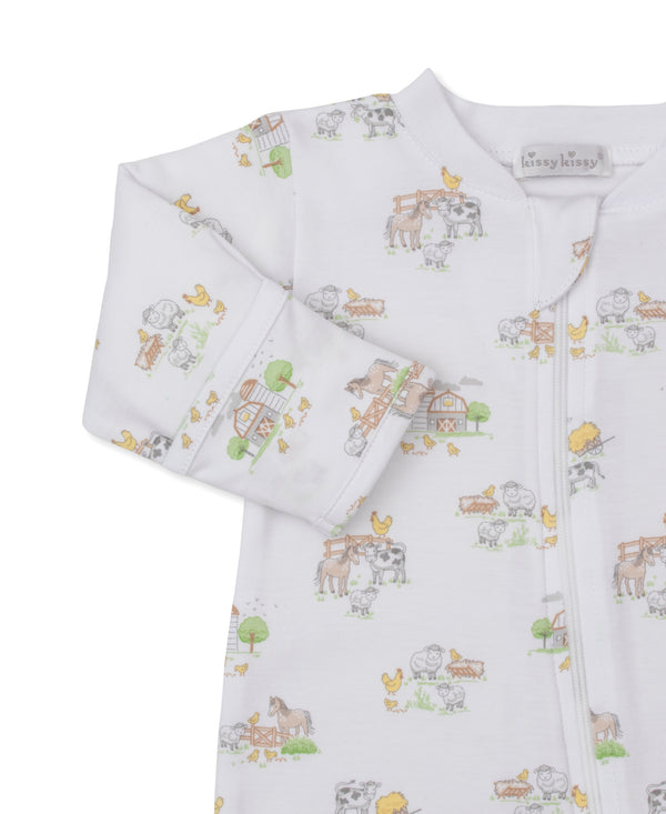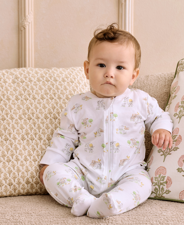 Playfully patterned with our Fun on the Farm print, our cozy, zippered footie for your precious baby is made from the softest Pima cotton for ultimate comfort.