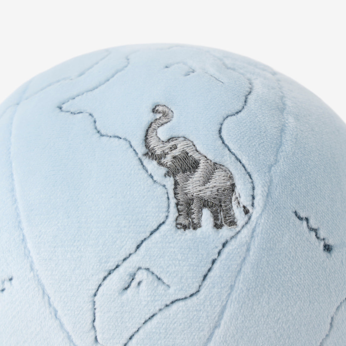 A tiny world of wonder in the palm of their hands—this soft light blue globe rattle features delicate embroidery of wild animals from across the continents. Crafted for little explorers, it's the perfect first toy to inspire a love of adventure.