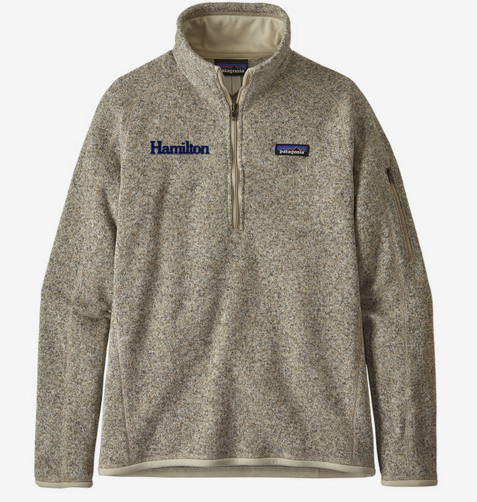 This Hamilton Women's Better Sweater Quarter Zip in Tan is a knitted, cross-dye pullover sweater that combines the aesthetic of wool with the easy care of 100% recycled polyester fleece. Dyed with a low-impact process that significantly reduces the use of dyestuffs, energy and water compared to conventional dyeing methods. Fair Trade Certified™ sewn.