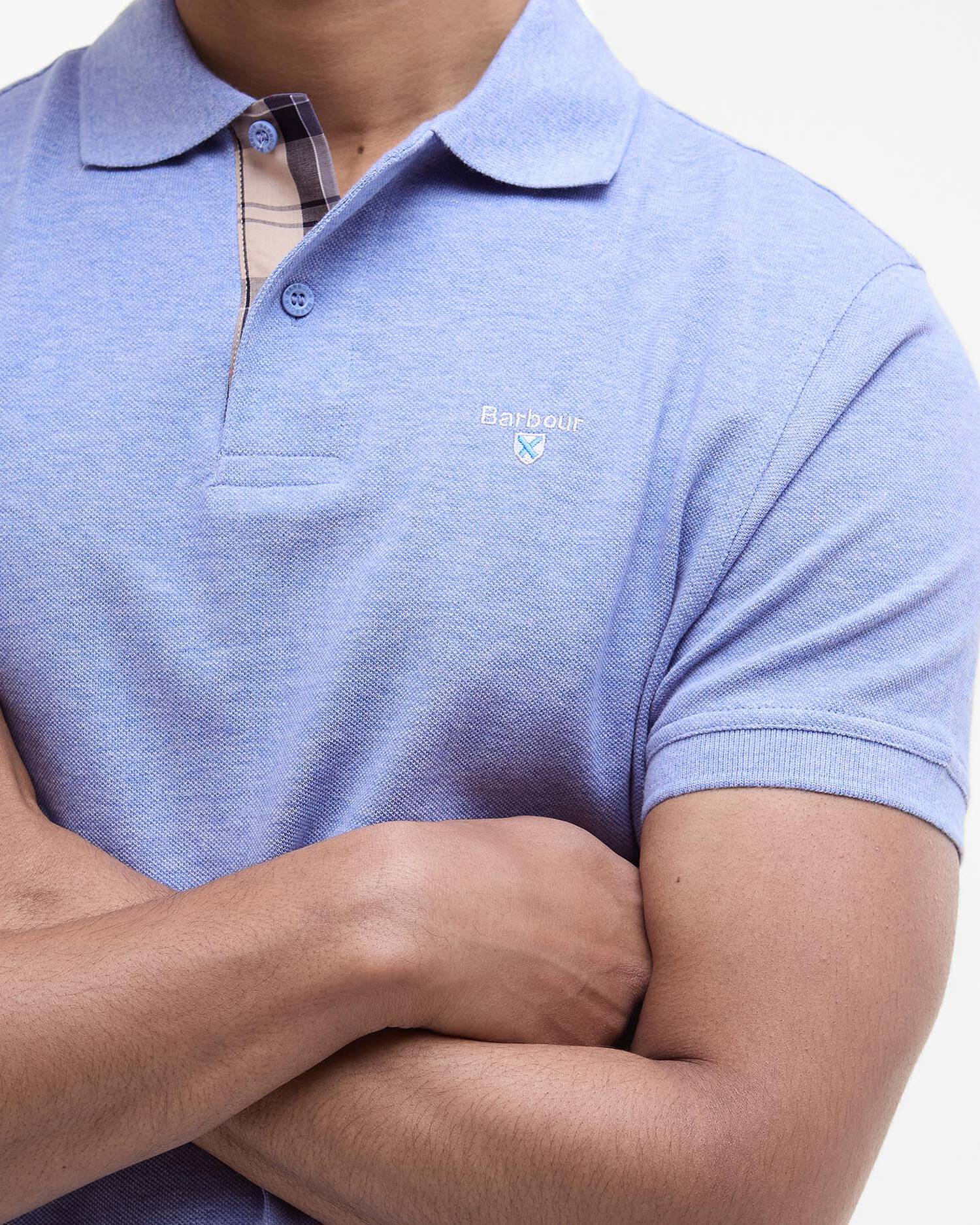 Barbour Tartan Pique Polo Shirt - Sky Marl/Dress Tartan