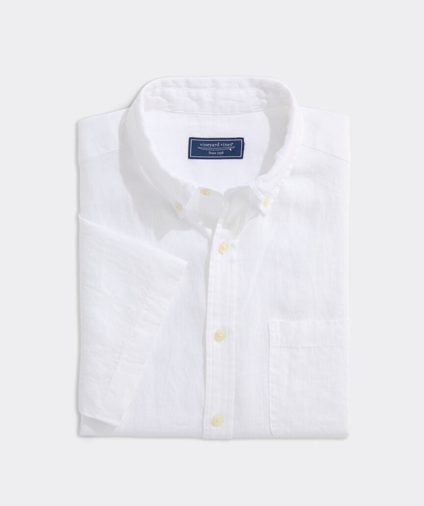 Vineyard Vines Men's Classic Fit Surfside Linen Short-Sleeve Shirt - White Cap