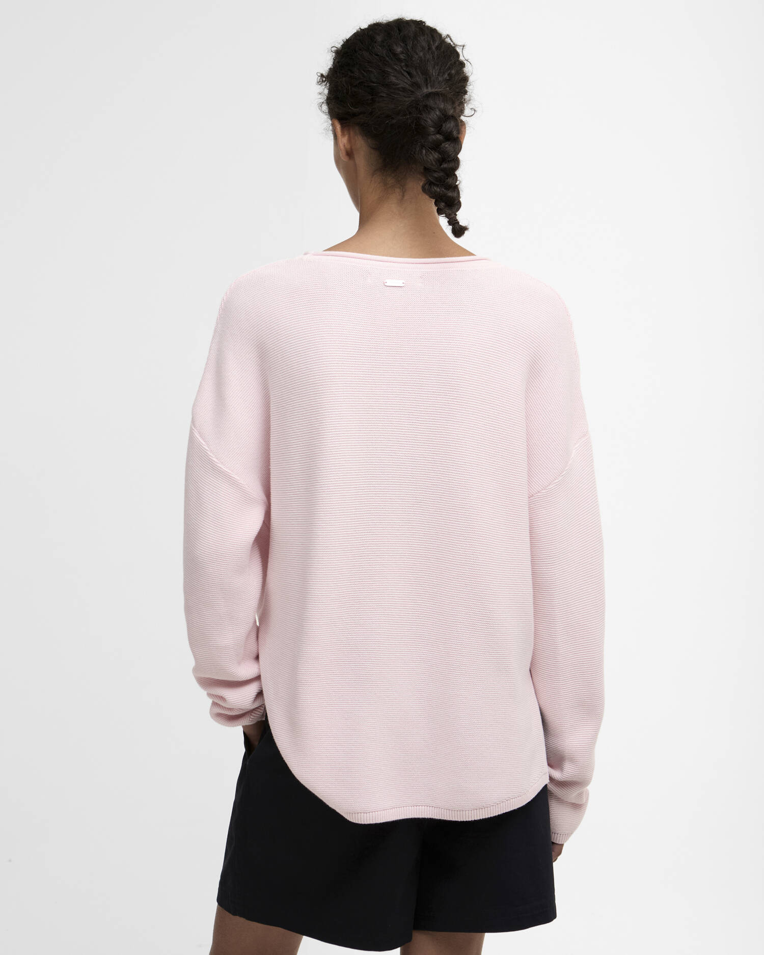 A versatile layering piece for the modern woman, the Barbour Marine Knitted jumper in Pink features a slightly cropped fit for a contemporary look. This easy cotton basic is woven in an all-over textured stitch, while the dropped shoulders and side splits at the hem give it a relaxed feel.